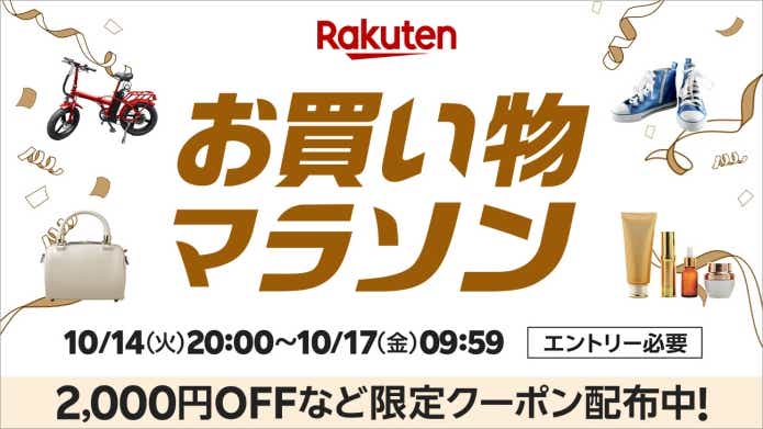 楽天市場では、10月14日(火)20時から10月17日(金)9時59分まで『お買い物マラソン』を開催!