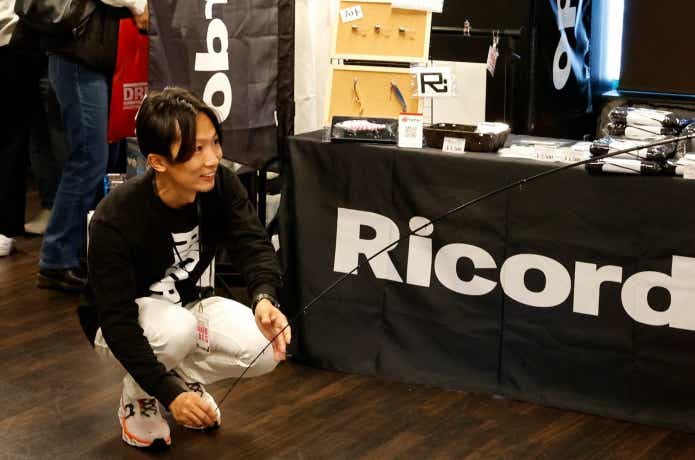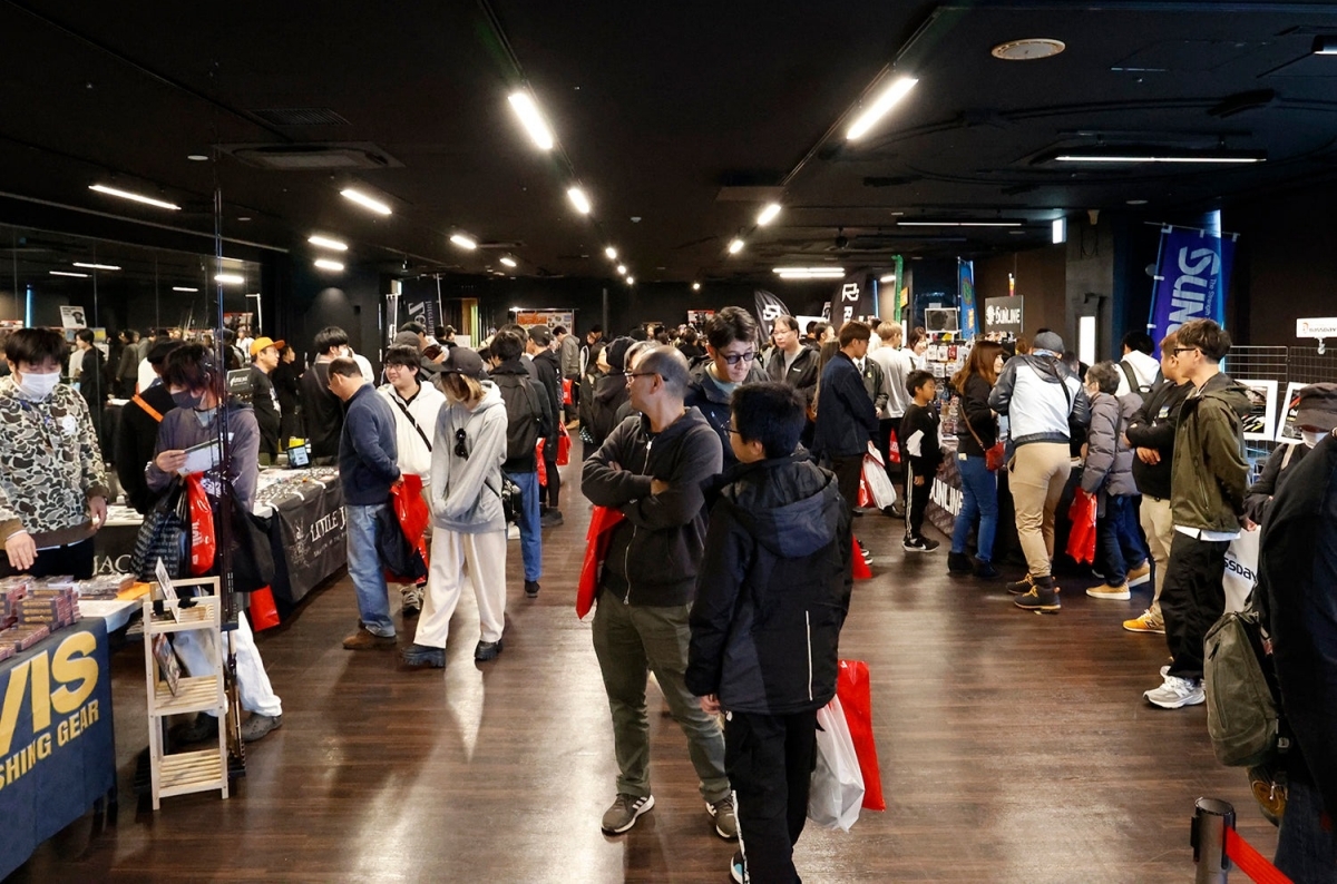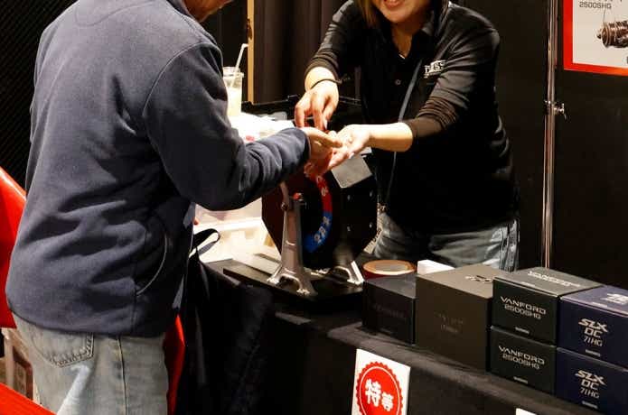 会場限定カラーのフィッシュグリップやルアーを販売。