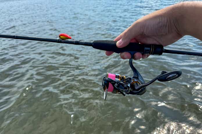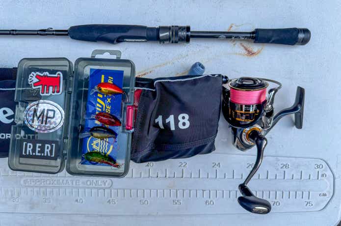 使用するのは30mmくらいの超小型クランクベイト。そのため、ロッドは軽量リグの操作性に長けた感度の良いフィネスタックルをチョイスしました。