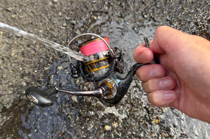 リールはもちろん、ロッドのガイドなどをしっかり洗っておかないとサビや塩カミの原因になるので念入りに洗浄しましょう。