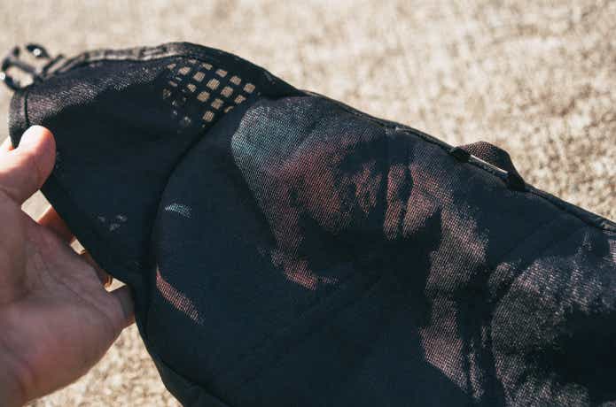 体に触れる裏面にはメッシュ素材が使われており、通気性に優れているのが特徴。