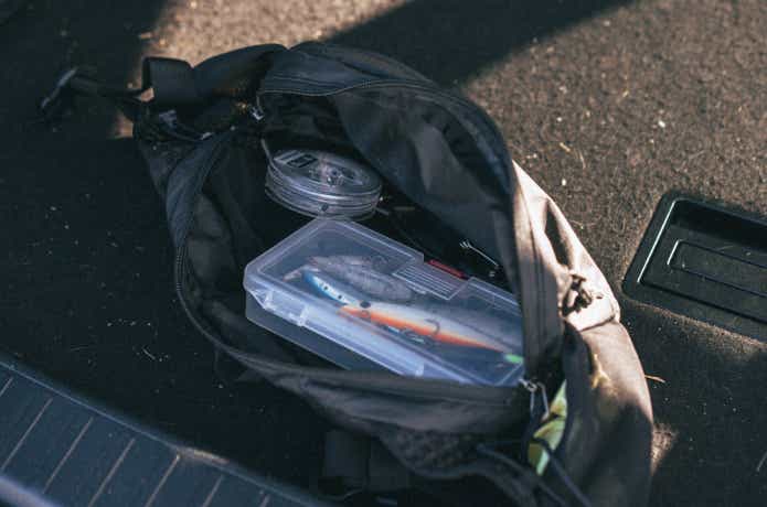ルアーボックス、リーダー、ハサミ、小物ケース、タオルなど、必要最小限の釣具が無理なくすっきり収まり、取り出しやすさも抜群。