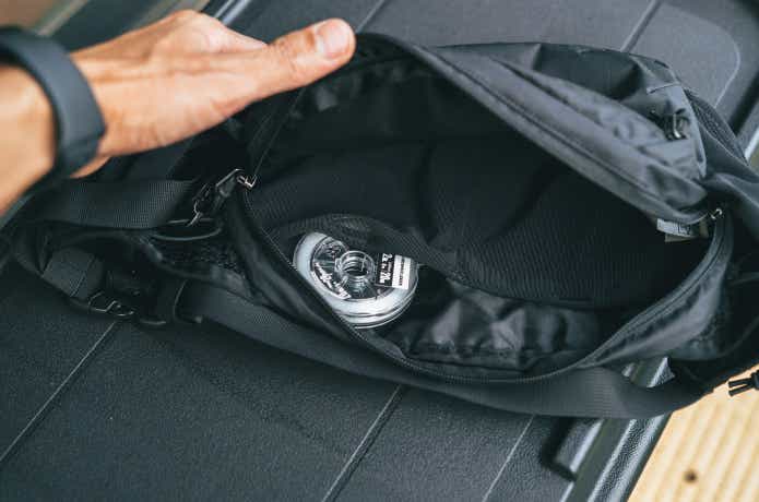 前面の両脇にはボトル用ポケットが配置されているため、ドリンクなども持ち運べます。