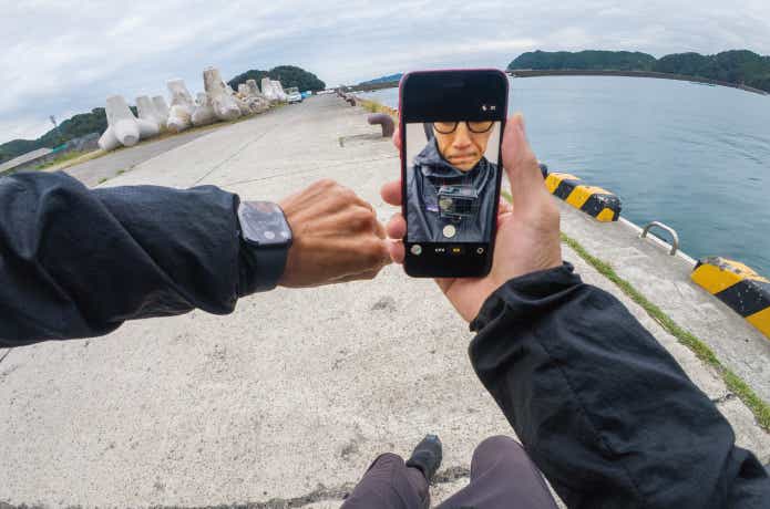 Apple Watchを使えば、iPhoneのカメラを遠隔操作できるので、スマホを三脚や岩の上にセットしても、手元の操作だけでシャッターを切ることができます。