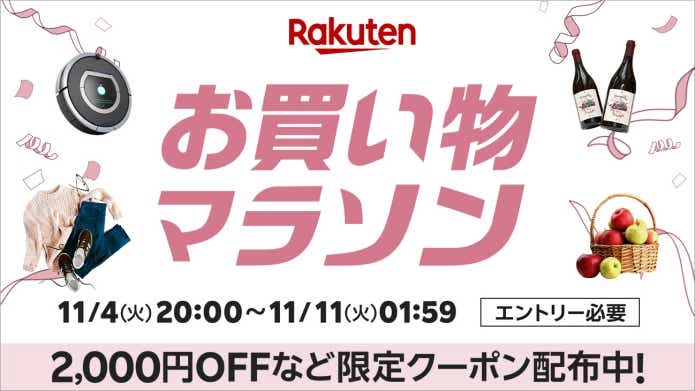 楽天市場では、11月4日(火)20時から『お買い物マラソン』を開催!