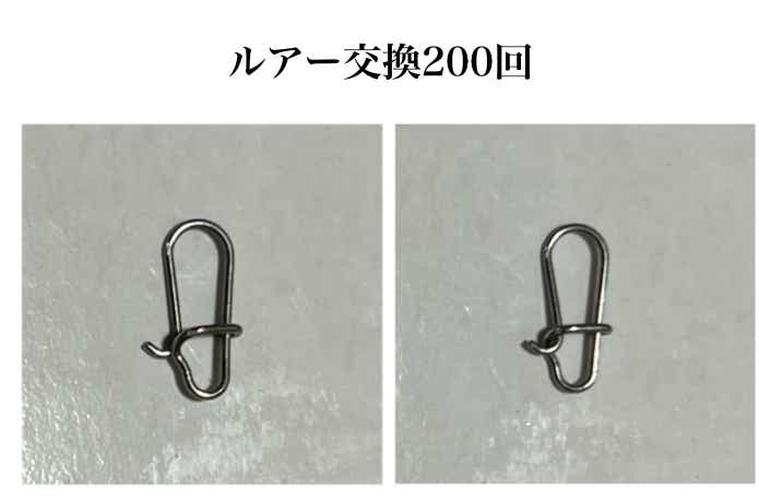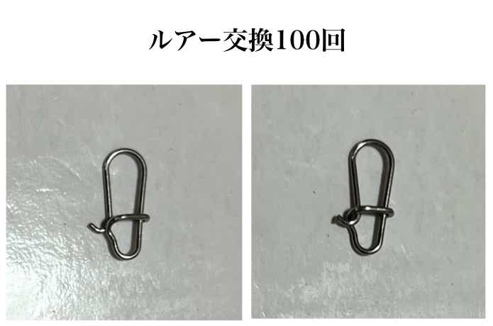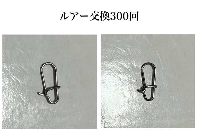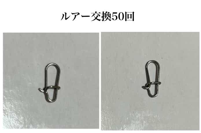 実使用の結果から、驚くほど変形が少ないことがわかりました。つまり、ルアー交換の多い釣りには最適!