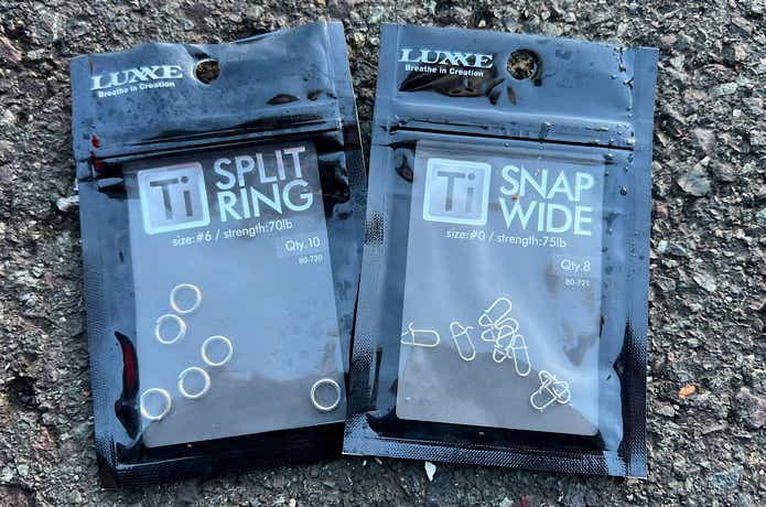 そのアイテムというのが、がまかつがラグゼブランドから発売した「Tiスナップ ワイド」と「Tiスプリットリング」。