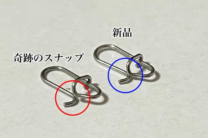 今までのスナップは開閉を繰り返すと戻り切らなくなり、外側に開いて伸ばしてから閉じることも多かったのですが、これをすると金属疲労で強度が落ちます。