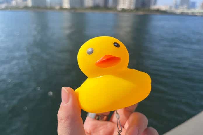 波にぷかぷか浮かぶ姿がなんとも可愛らしいアヒル型フロート。
