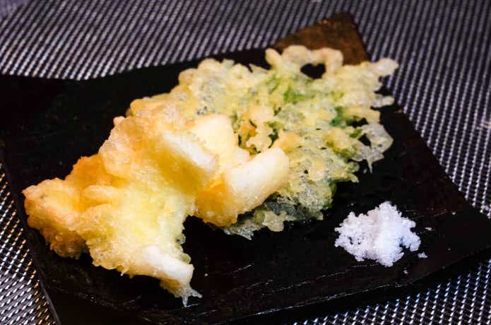 キリっと冷えた冷水で天ぷら衣をつくると、カラッと揚がりやすいですよ。