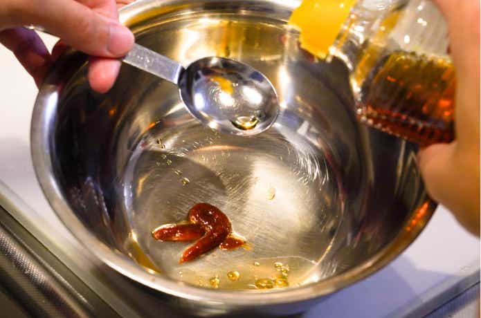 ごま油・コチュジャン・酢・砂糖・しょうゆをボウルに入れて混ぜ、合わせ調味料を作っておきます。