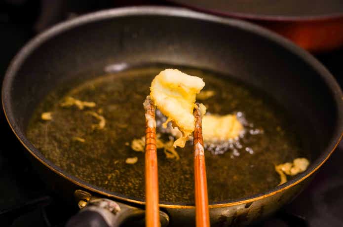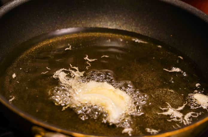 油に菜箸の先を入れた時に、泡がふつふつと出てきたら頃合いです。
