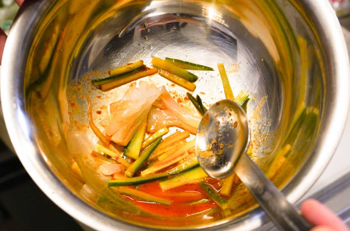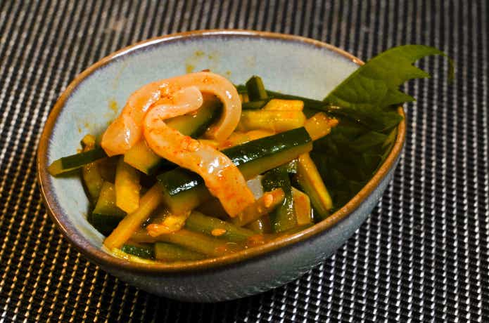 きゅうりとイカの食感の違いが楽しく、ピリ辛な後引く美味しさで箸が止まらなくなります!