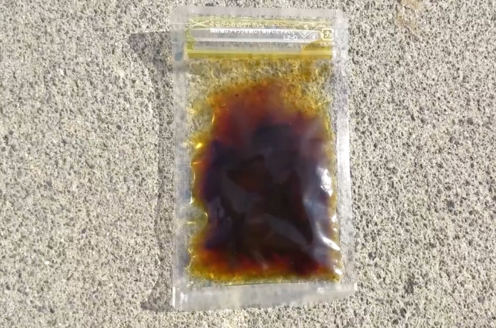 なにやら茶色い液体に浸かっていますね。