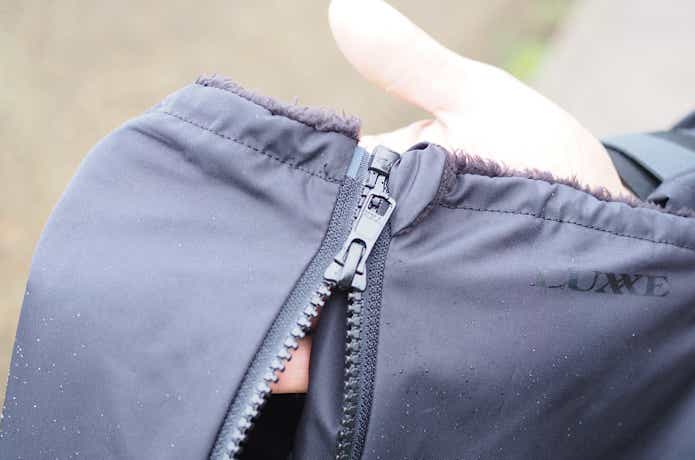 この下方向に閉じるファスナーも非常に機能的で、インナーやアウターとのフィッティングがとても良いんです。