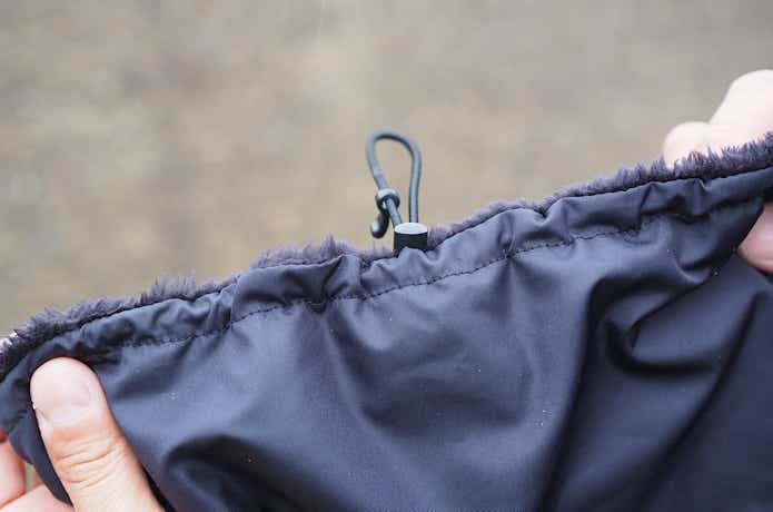 また、風が強い時は絞るとフードのバタつきを抑えられて快適です。