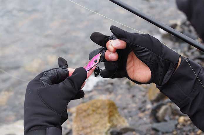 第一関節を超えるあたりまで露出するので指先をスムーズに曲げられ、ルアー交換や結び変えといった細かい作業がとても楽でした。