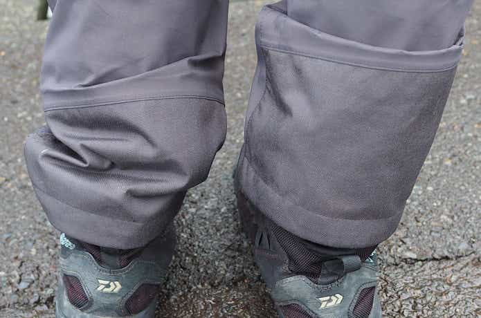 高い段差を登るために足を高く上げたり、ランディングやルアーチェンジで屈んだりしても、ストレスがありません。