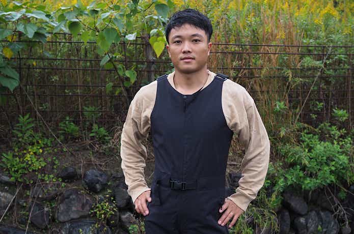 こういったオーバーオールは、腰回りがジャケットと干渉してゴワつくイメージがあるかもしれませんが、これならスッキリ着こなせますね。