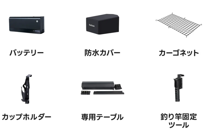 e-Wagon Airはオプションパーツも充実しており、ロッドホルダー(釣り竿固定ツール)もラインナップされています。
