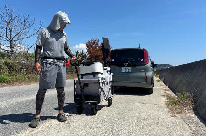 カート無しでこの物量を釣り場まで運ぶとなると……苦行なのは言うまでもないでしょう(笑)