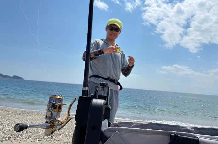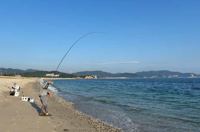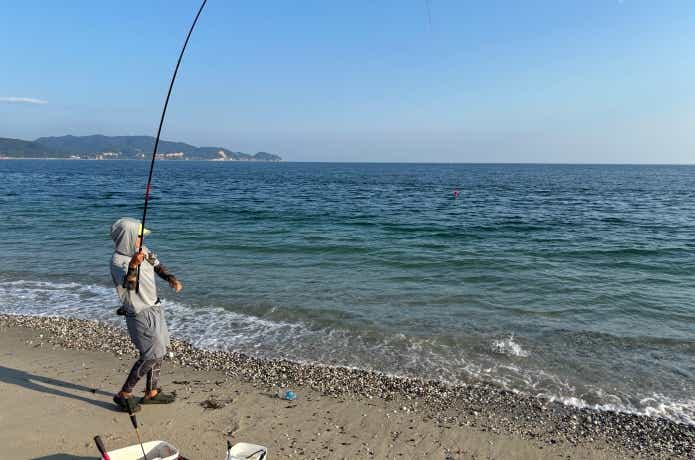 コマセは波打ち際だけに撒き、仕掛けを20mほど沖へ投げ込むと……!