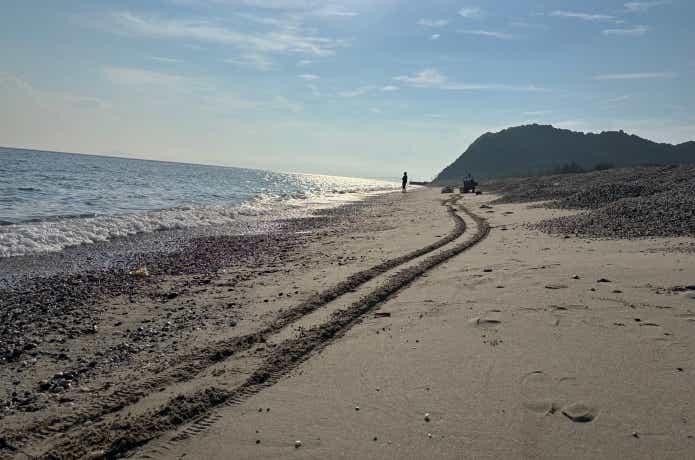 砂浜は厳しいかと思いましたが、固められている部分なら問題なく走れます。