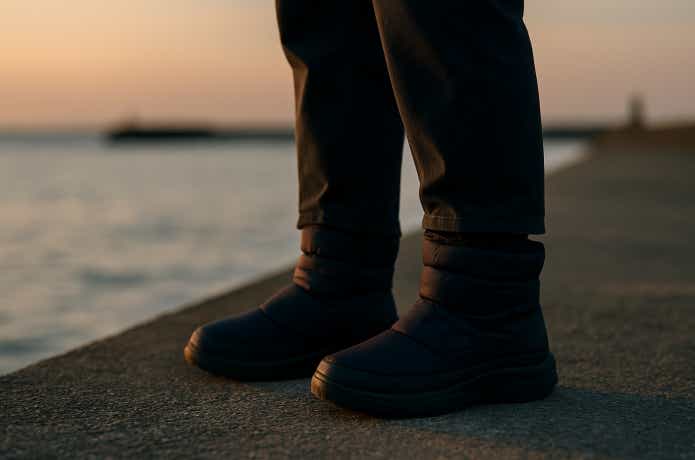 軽量のEVAブーツやネオプレン素材であれば、長時間立ちっぱなしでも疲れにくくて、女性でも履きやすく、コーデの邪魔をしない“冬釣りの救世主”です。