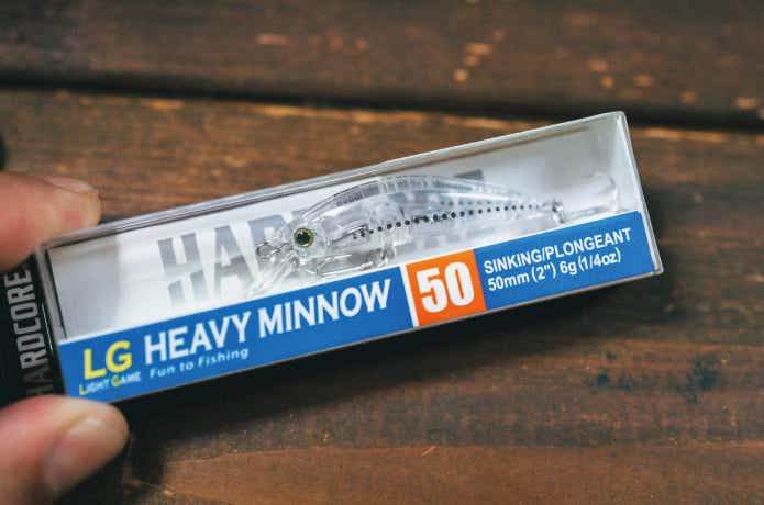 ちなみに、このルアーはハードコア® ヘビーミノー(S)の“ライトゲーム(LG)版”にあたるモデルです。