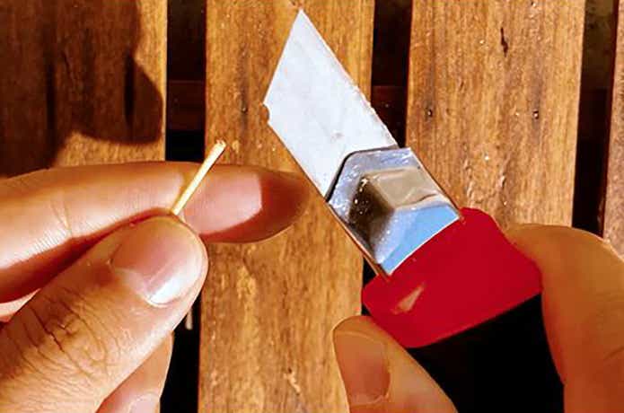 切った部分はヤスリがけをし、節に枝の残りがある箇所はカッターやヤスリで滑らかにしておきます。
