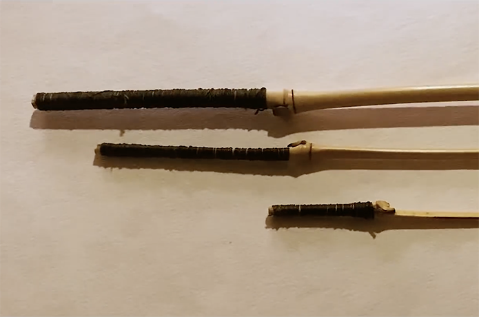 タナゴ竿の場合は太い握りは不要なので、新聞紙を巻いて作ったりもするようなのですが、どうしても使いたかった手持ちの竹を加工して握りとすることにしました。
