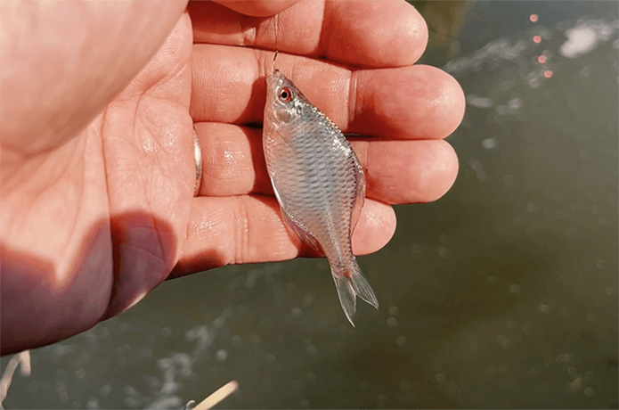 タナゴや小鮒といった小物釣りで使うと、操作感は十分で、繊細なアタリも手元までしっかり伝わってきます。