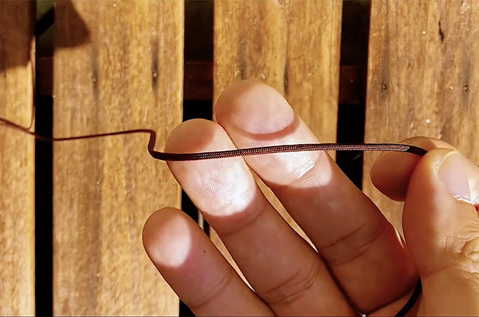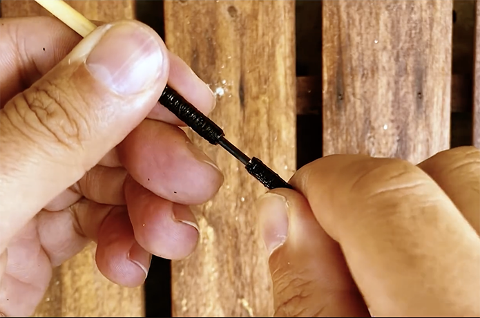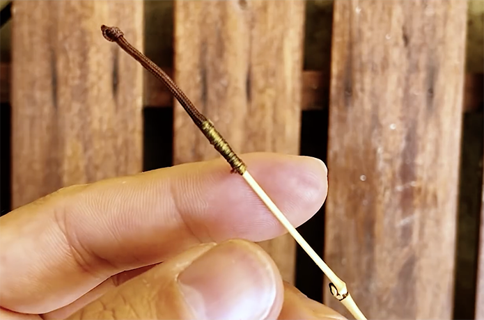 削った竿先にリリアンを差し込んだら絹糸を巻いて補強。