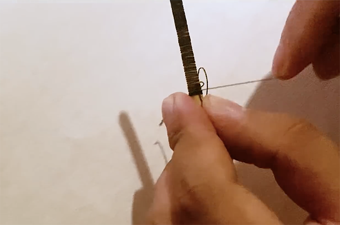 巻き終わりは、あらかじめ作っておいた糸の輪に巻き糸を通し、最後にその輪を引き抜けばしっかり固定できます。