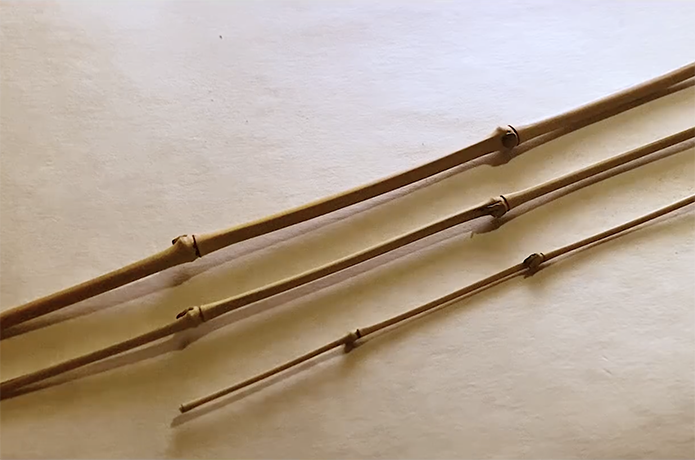 この竹を加工して、印籠継と呼ばれる3本継の釣り竿にします。