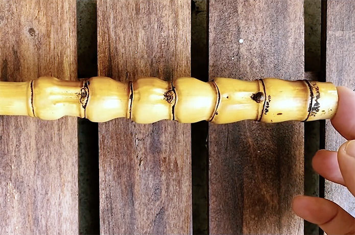 実際は竹を乾燥させて火入れして矯正……といった手順になるようですが、火入れ済みの1mほどの布袋竹(ホテイチク)を購入しました。