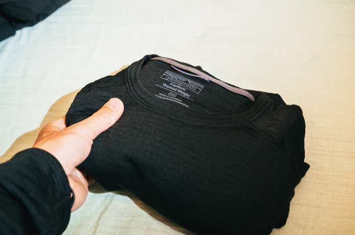パタゴニアのベースレイヤー「キャプリーン・サーマルウェイト・クルー」。