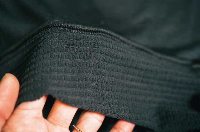 それもそのはず、裏地はグリッド構造で、立体感のあるフリースのような生地感になっています。