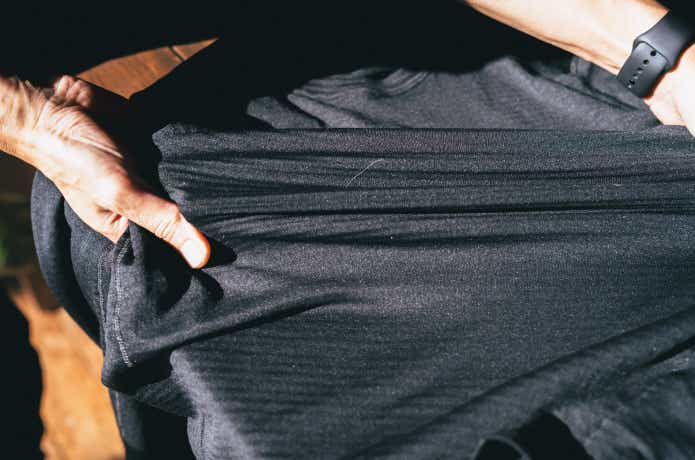 一見すると繊細な風合いながら、実際にはタフに使える印象で、冬場のベースレイヤーとして安心して任せられる耐久性を備えています。