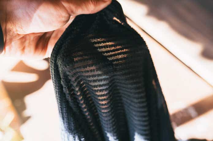 ボーダー状のグリッド構造によって、こもりやすい湿気や余分な熱を外へ逃がす通気性もしっかり確保されています。