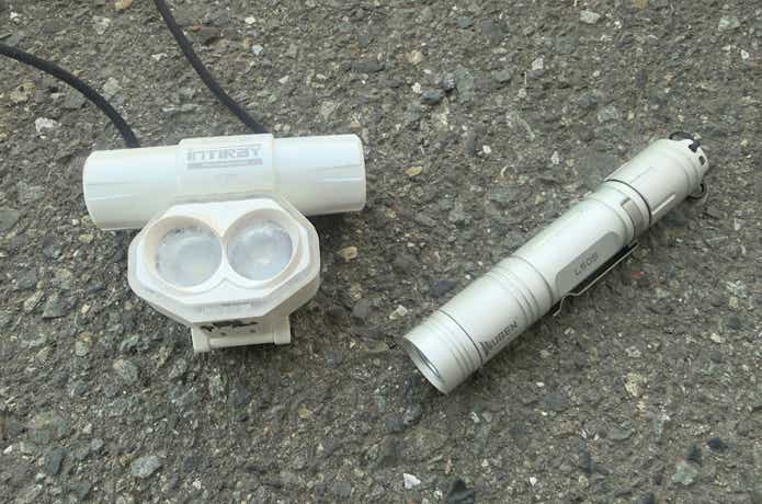 ヘッドライトだけでは足元に影ができて死角が発生することもあるため、じつは細かい危険を見落としやすいのが難点。