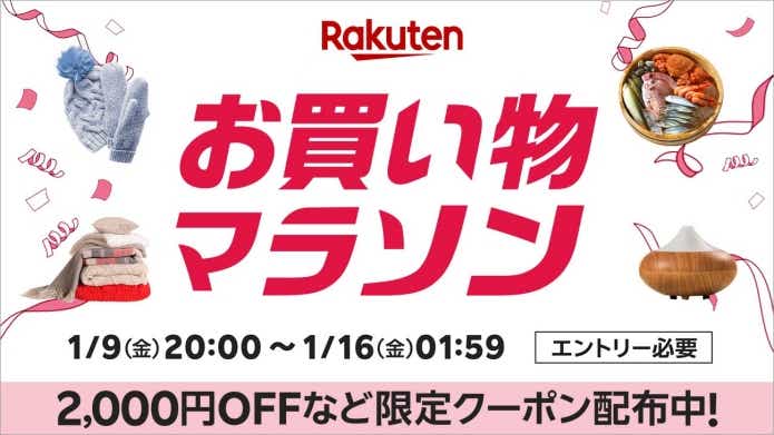楽天市場では、1月9日(金)20時から『お買い物マラソン』を開催!