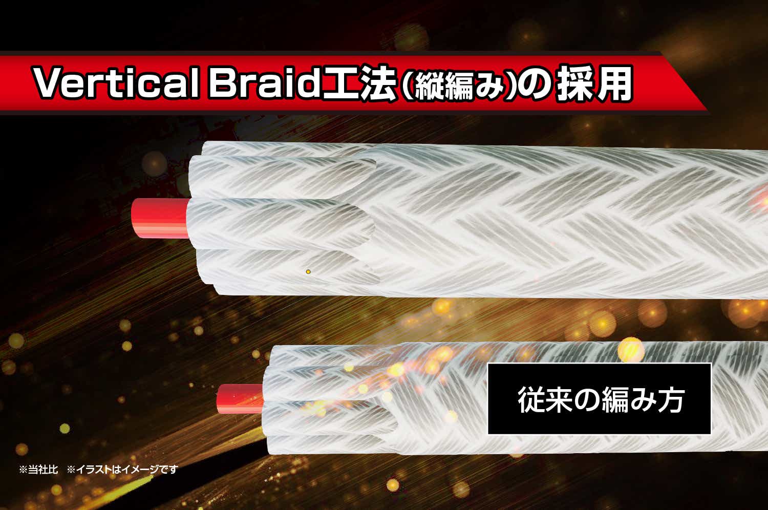 これはバーチカルブレイド工法という縦編みの効果によるもので、よりダイレクトな操作感や感度を実現しています。