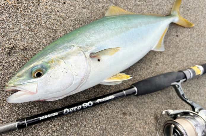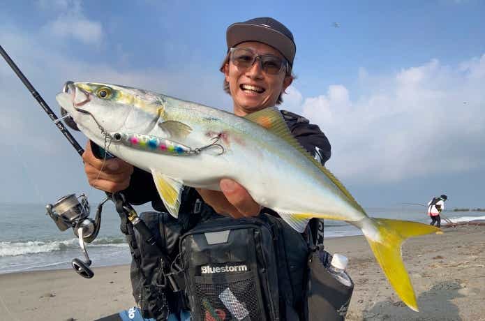 ライトショアジギングでキャッチしたイナダ。