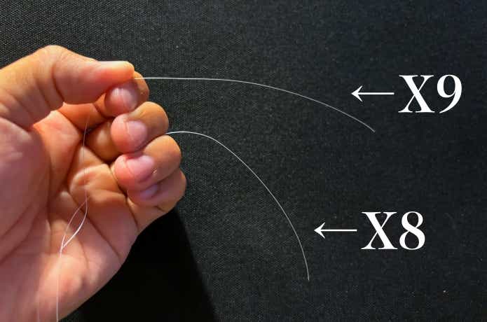 ですがX9シリーズは、文字通り9本の原糸で編まれているPEライン。