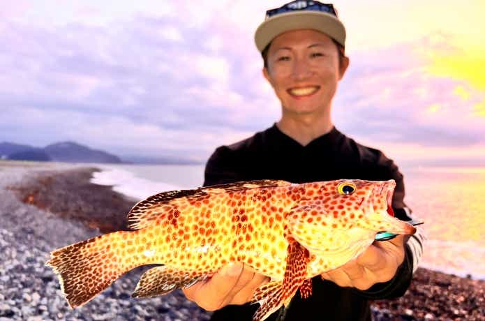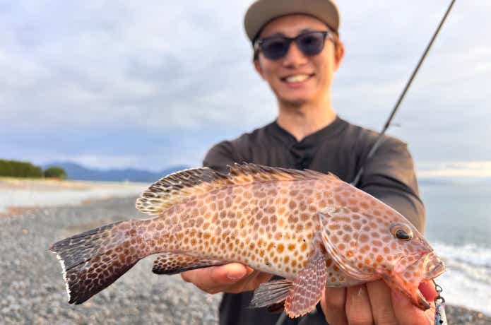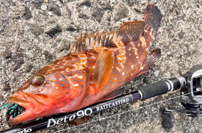 なんと、ショアマスターX9の0.6号でキャッチしたキジハタ47.5cm。