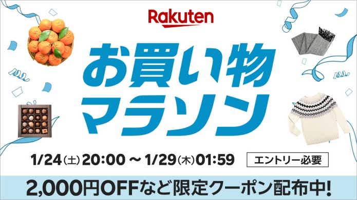 楽天市場では、1月24日(土)20時から1月29日(木)1時59分まで『お買い物マラソン』を開催!