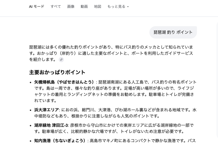 令和時代はAIやまとめサイトが当たり前になり、「最近の釣果」や「おすすめルアー」も一瞬で調べられるようになりました。