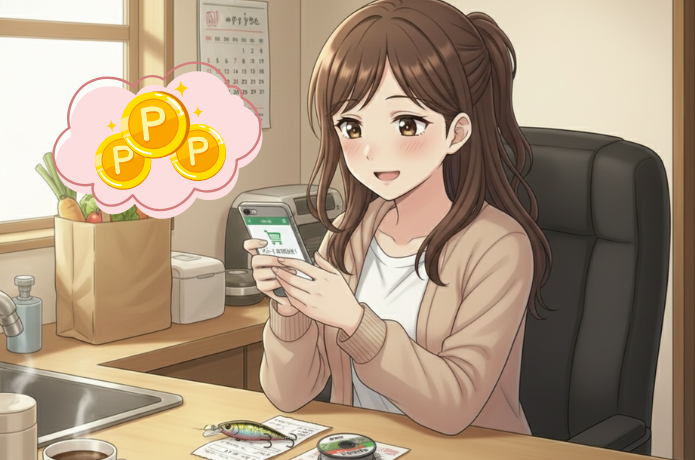 コツコツと貯めたポイントは、食費に回されるのではなく、ひっそりとルアーやラインに姿を変えていきます。
