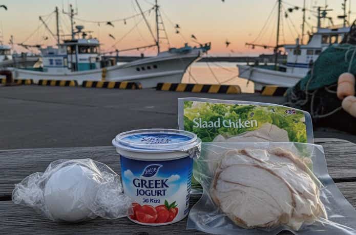 コンビニでも手軽に揃えられる最強釣りメシの筆頭はなんと言っても、ゆで卵とサラダチキン。